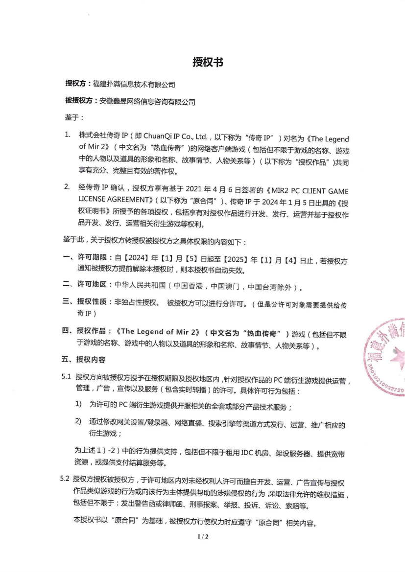 關(guān)于對(duì)《The Legend of Mir 2》(熱血傳奇) 衍生品游戲直播的嚴(yán)正聲明